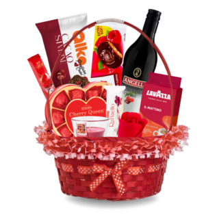 Cos Cadou Red Passion cu Delicii – Set Premium în Cos Roșu cu Mâner
