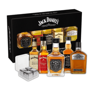 Set Cadou cu 5 Miniaturi Jack Daniel’s și Cuburi Inox – 5 x 50 ml