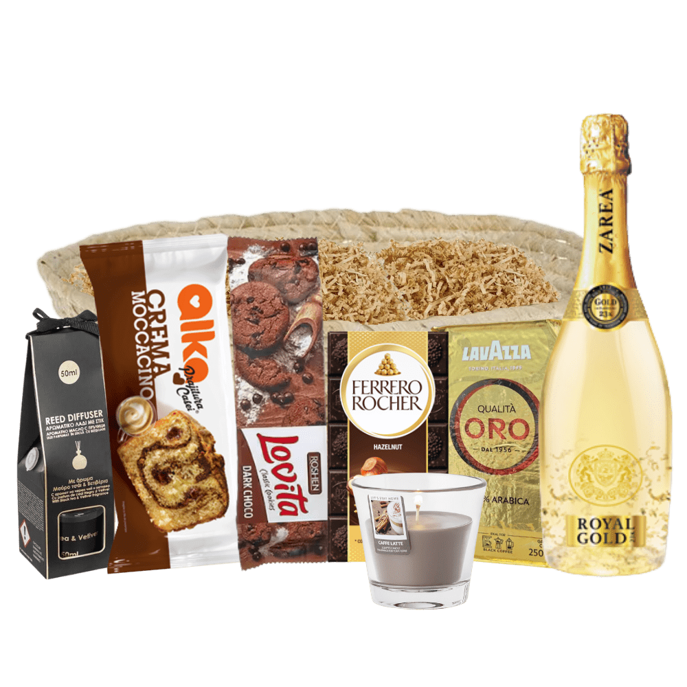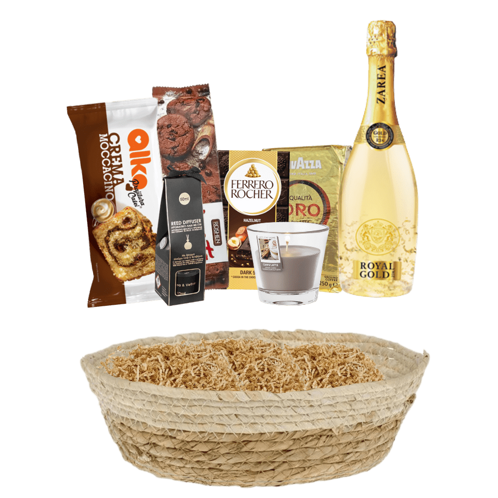 Acest cos cadou auriu cu produse rafinate reunește o selecție atentă de produse premium. Toate sunt integrate perfect în tema aurie elegantă. Fiecare produs a fost ales pentru calitatea superioară.
