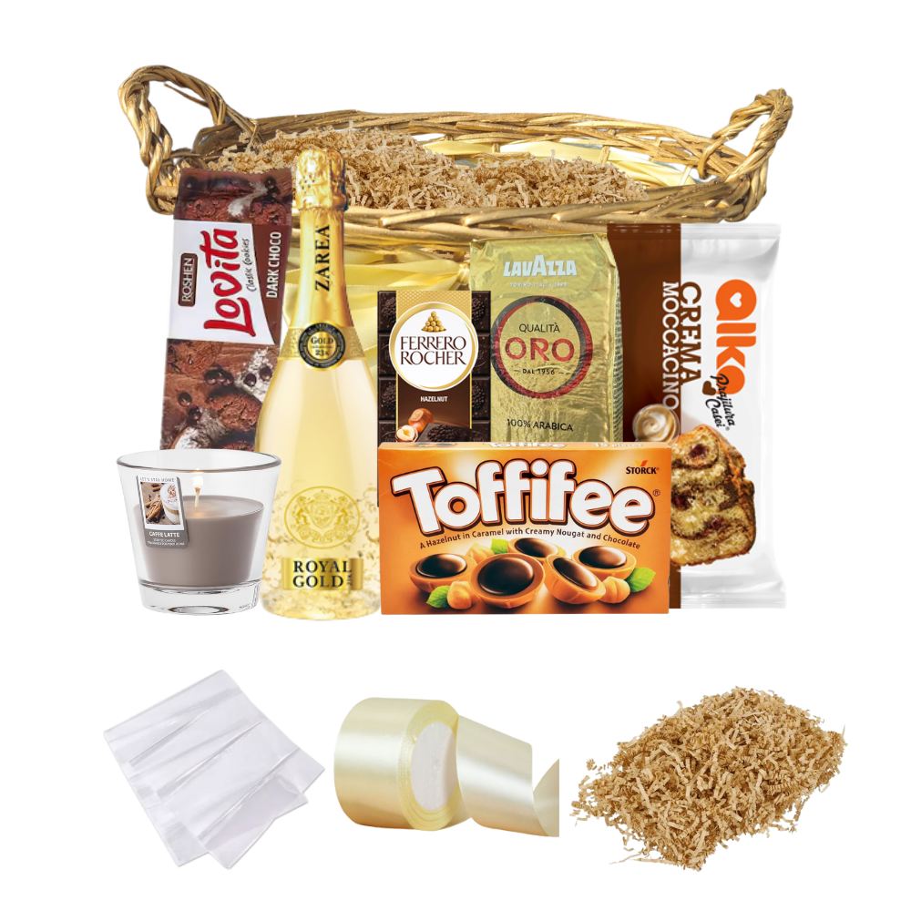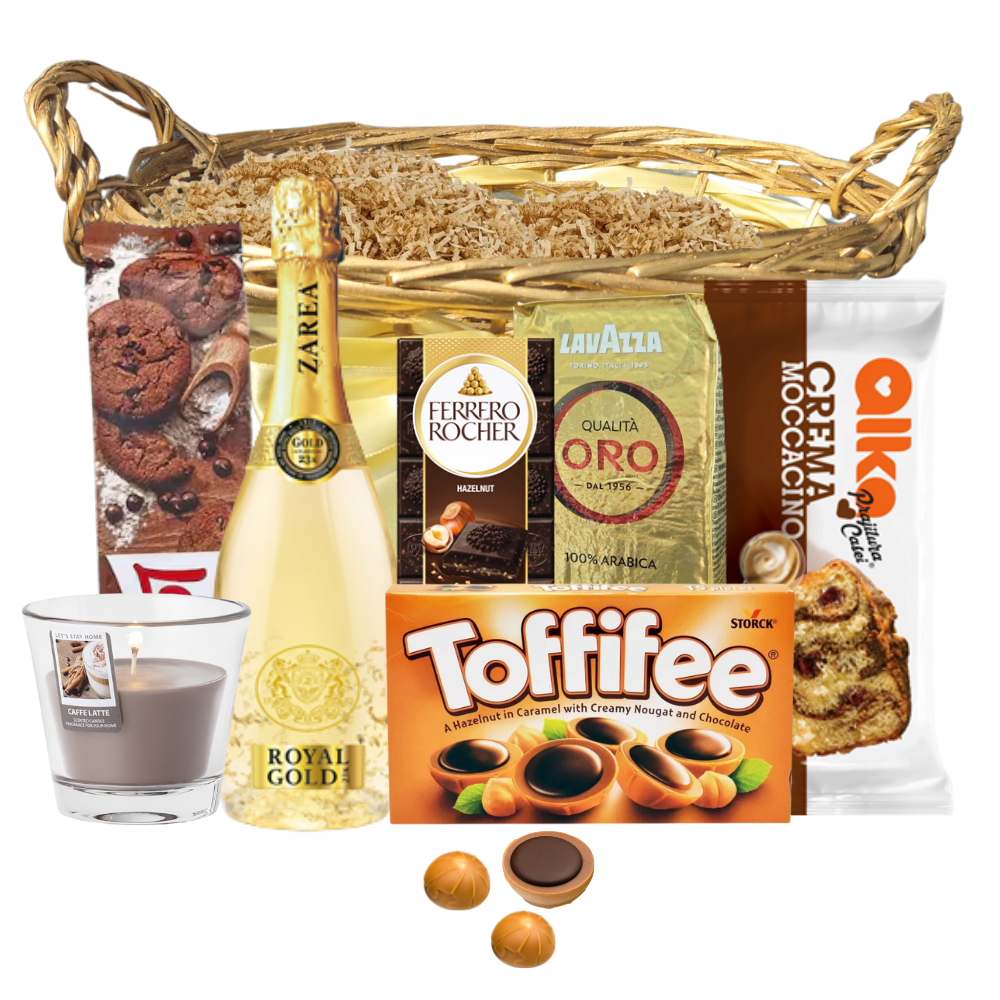 Acest cos cadou gold premium reprezintă alegerea perfectă pentru orice ocazie specială. Eleganța și calitatea produselor îl transformă într-un cadou memorabil.