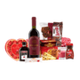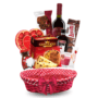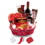 Selecția atentă include produse de calitate, dulciuri fine și băuturi premium, toate aranjate într-un coș decorativ elegant, pregătit pentru a fi oferit imediat.