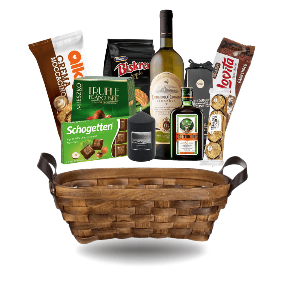 Acest cos cadou honor exprimă recunoștința. Include 11 produse premium alese cu atenție.