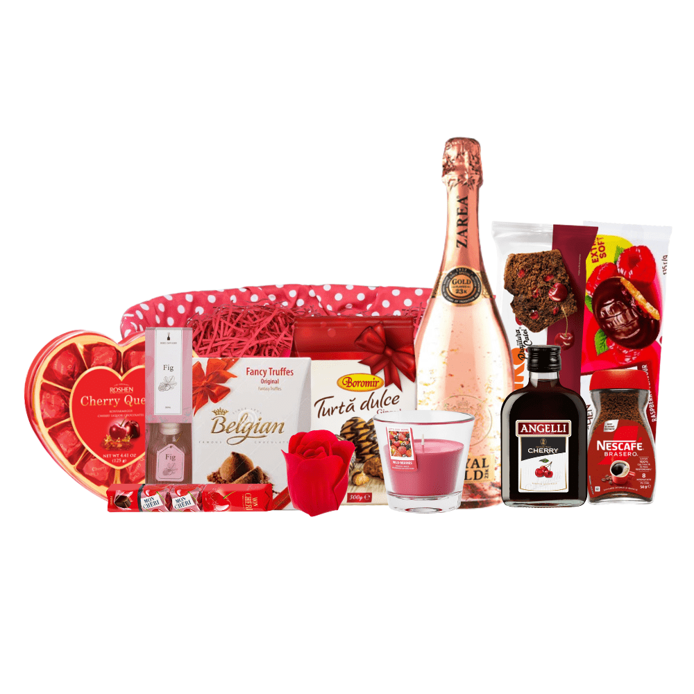 Acest cos cadou love exprimă sentimente frumoase. Include 12 produse premium alese cu grijă.