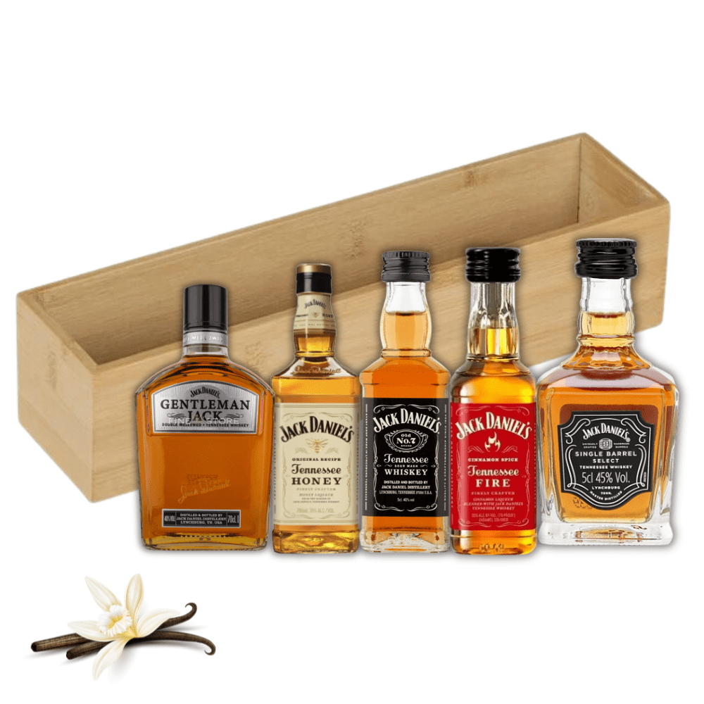 Acest pachet cadou whisky premium include 5 miniaturi Jack Daniel’s Tennessee, fiecare de 50 ml. Setul este prezentat într-o cutie elegantă de bambus și vine complet ambalat pentru a fi gata de oferire ca si cadou sau gest de multumire.